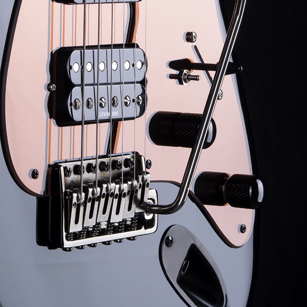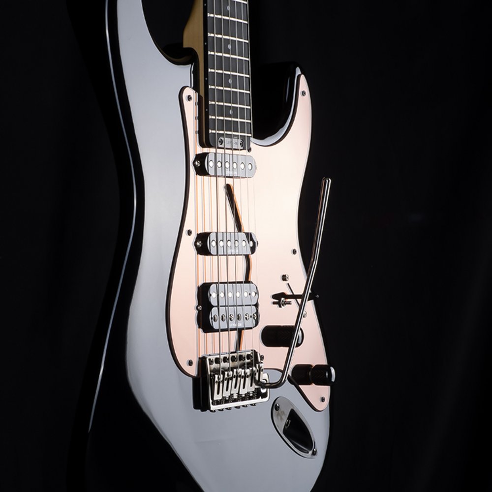 Launched parallel to the RH-4 in 1987, the BLADE® RH-3 offers a different tonal spectrum than its cousin – the RH-4. Very resonant with great sustain, the RH-3 cuts through with the fat upper-mids of the North American alder body for a round, rocking, bluesy sound. It is finished with a hand-polished polyurethane lacquer in opaque colors. The RH-3 sports the Levinson noiseless V-3 stacked coils and LH-55 humbucker for great tone, punch and dynamic response. The patented Falcon FT-1 tremolo, locking machine heads, sepia mirror pickguard and legendary Variable Spectrum Control complete this excellent package - beauty in a beast.