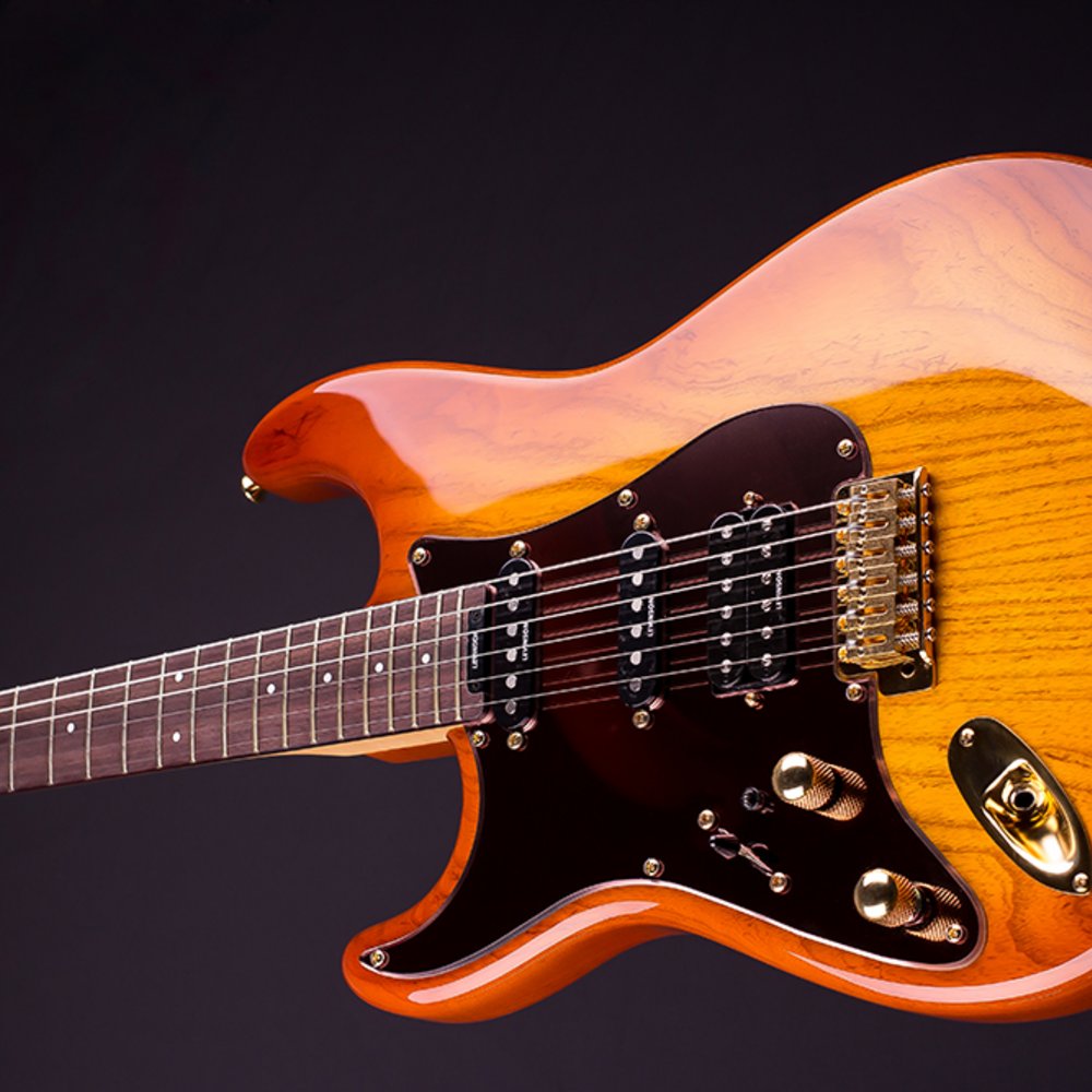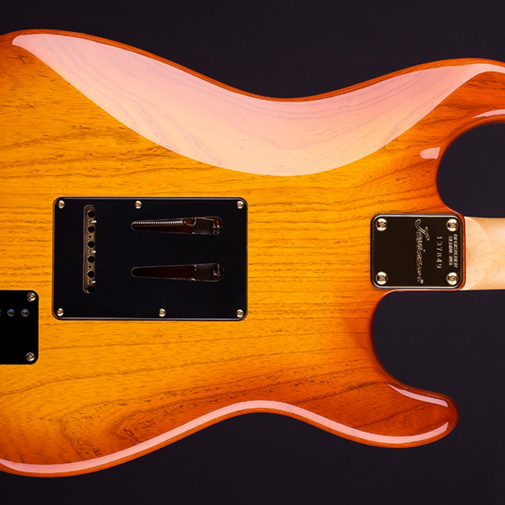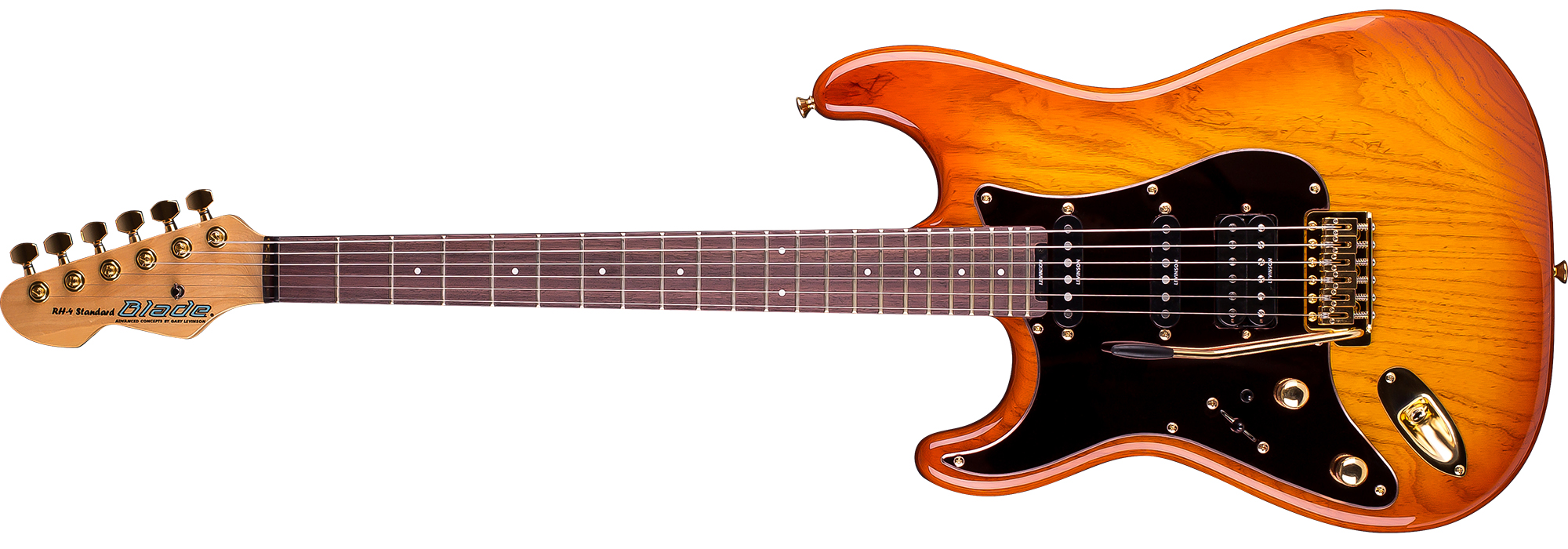 The original Blade – a modern classic since 1987. The BLADE® RH-4 is an exquisite instrument, immediately recognizable by the sepia colored mirror pickguard and superb, hand-rubbed translucent colors of polyurethane finish on a weight-graded American swamp ash body. The noiseless Levinson V-3 single coils give you great tone and punch – but without the hum. The LH-55 is the Levinson classic humbucker for warmth, fatness and dynamic response while not losing high end clarity. The Variable Spectrum Control tone enhancement allows you enormous tonal variation: jazz, blues, rock country – it’s all there. You will not want to put it down.